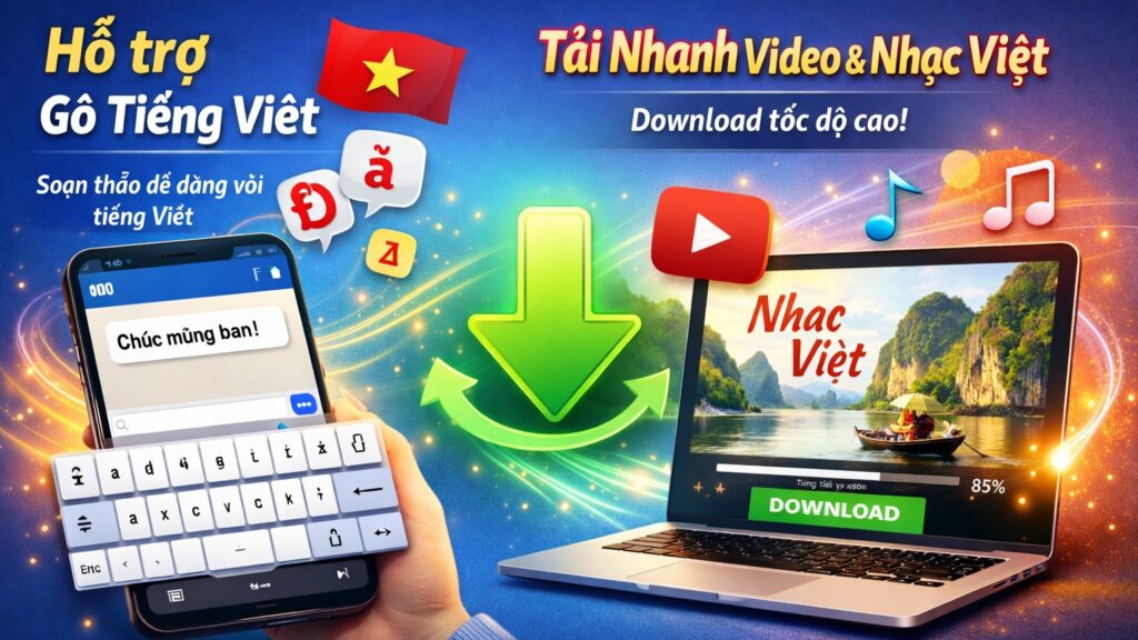 そこにベトナム人向けの追加機能として、ベトナム語入力サポートや、ベトナム語の動画や音楽ファイルの高速ダウンロード機能を追加していました。