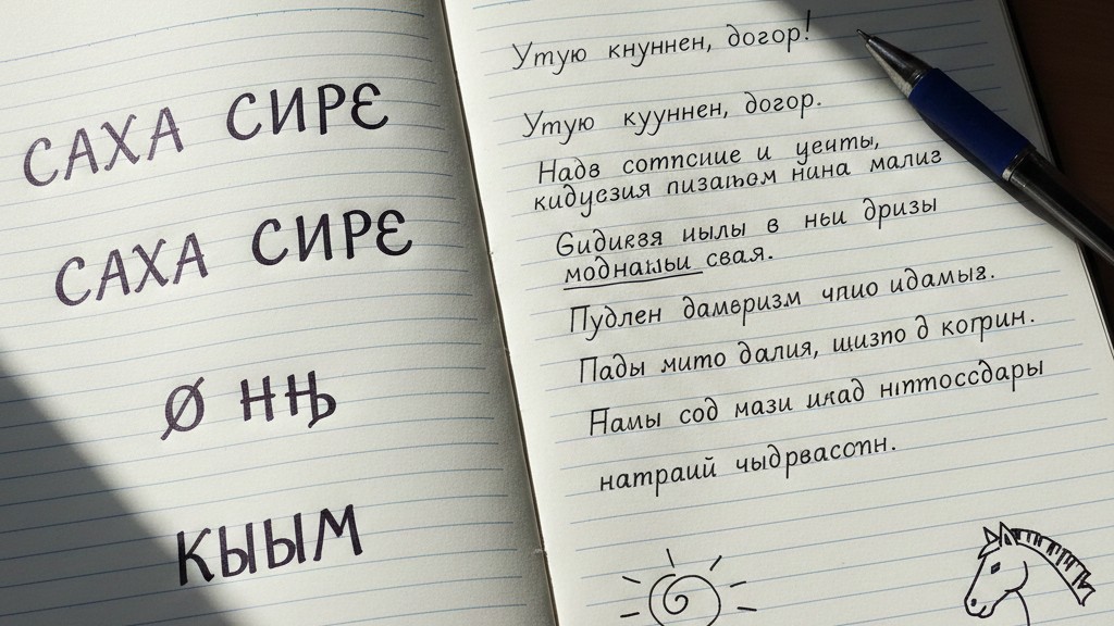 サハ語の表記はロシアで一般的に使われているキリル文字を用いており、ロシア語の単語も多く取り入れています。